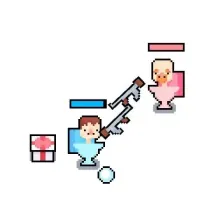 Use the WASD keys to move the Blue Player. Press the T key to shoot. Use the Arrow Keys to move the Red Player. Press P to shoot. Mobile devices are also supported for gameplay.